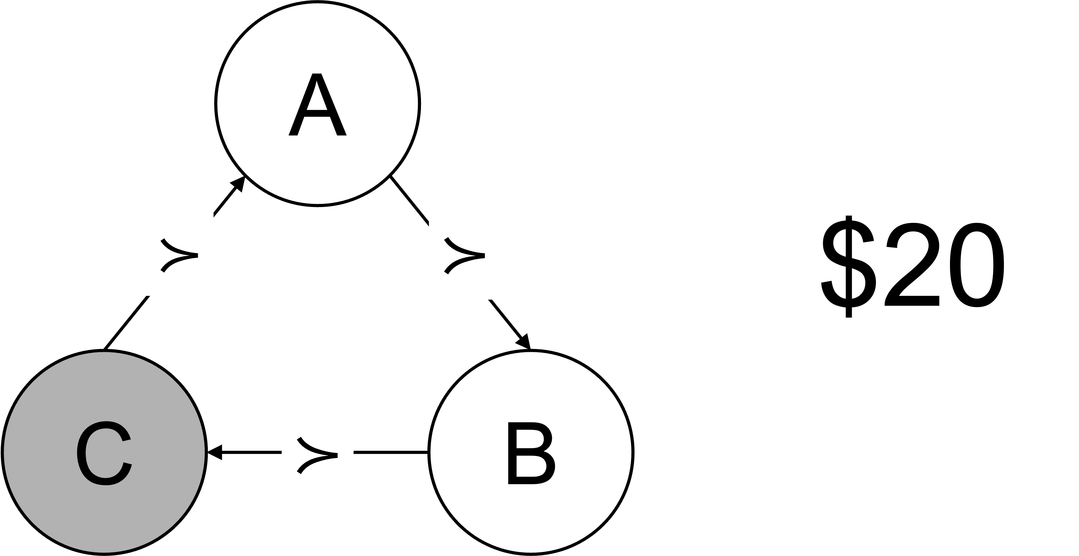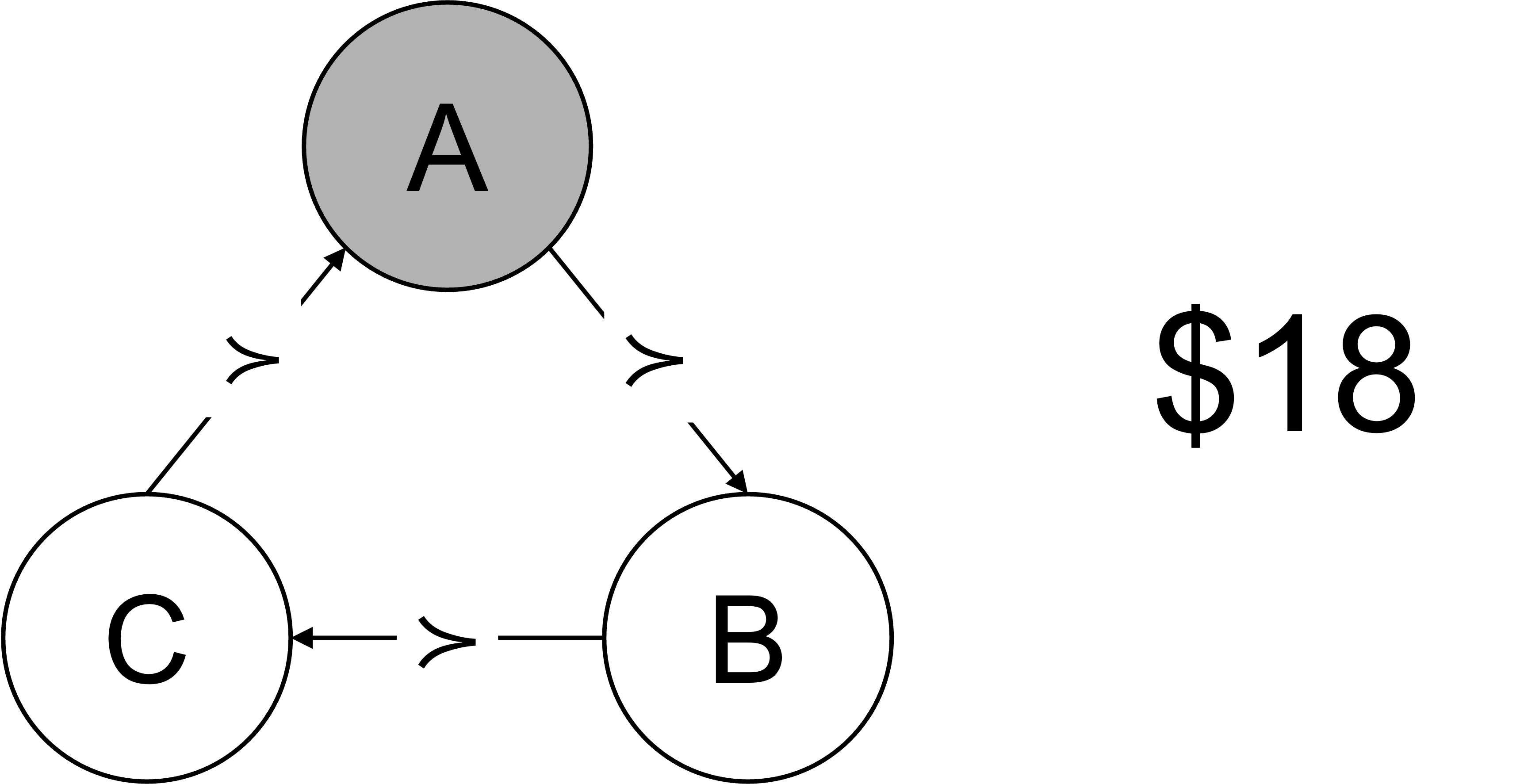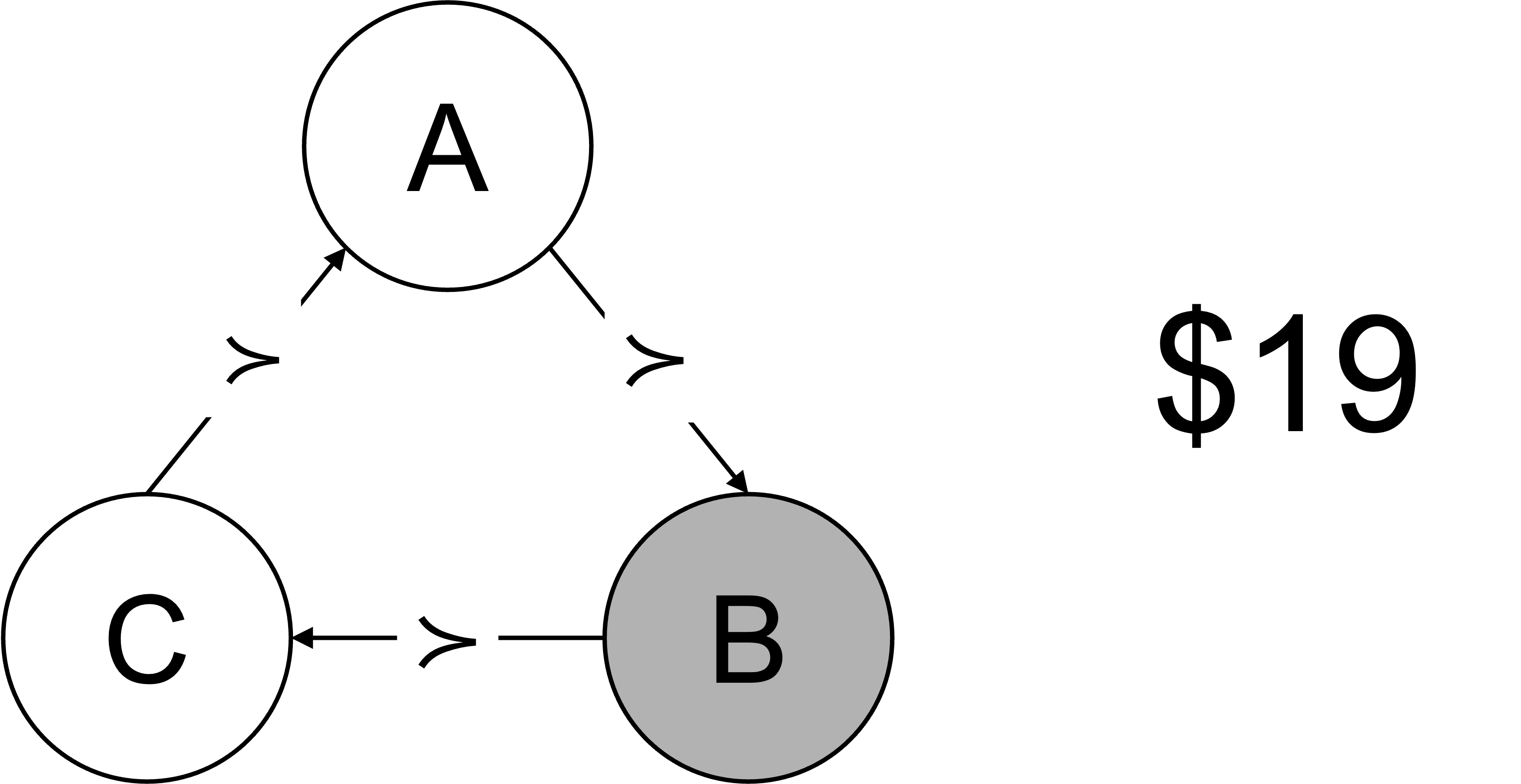 Suppose you have a person who prefers A to B, B to C and C to A. That is, they have intransitive preferences. They have $20 and an endowment of C.