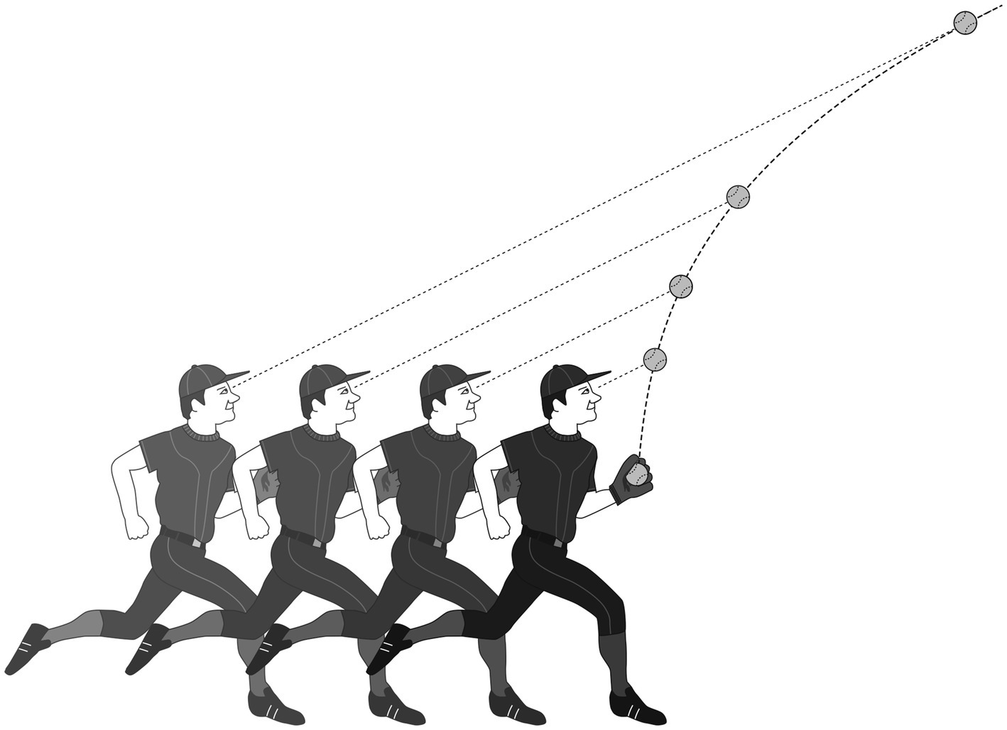 Another would be to use a simple rule: keep your eye on the ball and maintain a constant angle of gaze as you move. This mental shortcut - known as the gaze heuristic - works remarkably well. Yet this same strategy can lead you to run in a curved path rather than straight to where the ball will land. It might lead to first run away and then run toward the landing point.