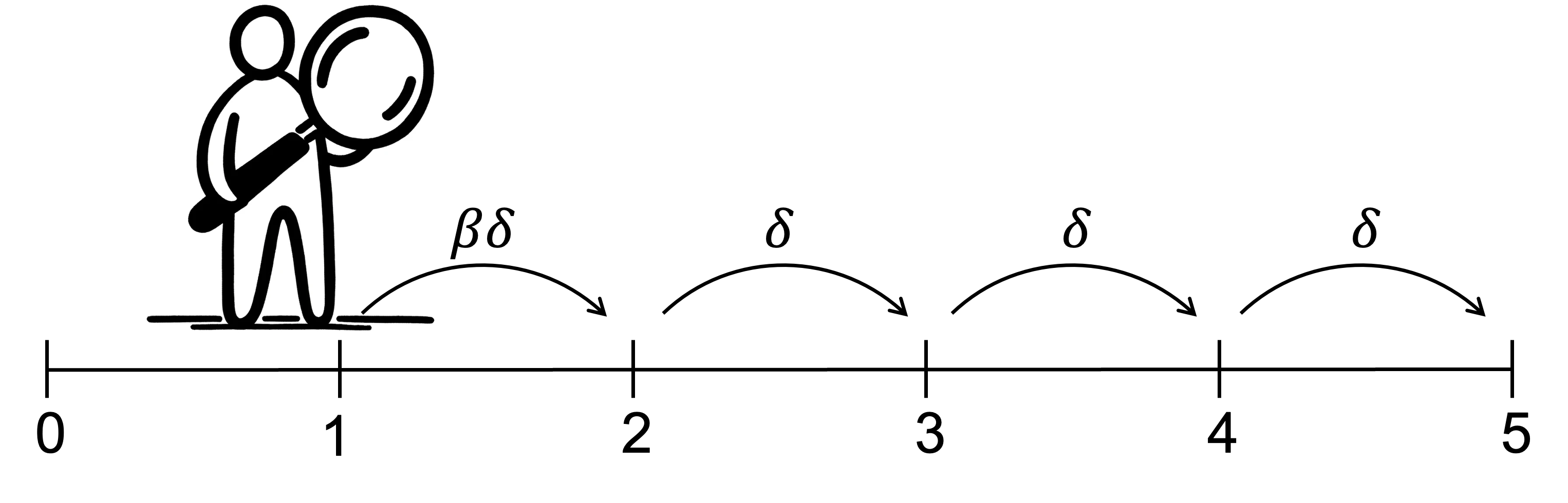 When the naive present-biased agent considers this problem, they simply compare the discounted utility of each payoff from the perspective of today.