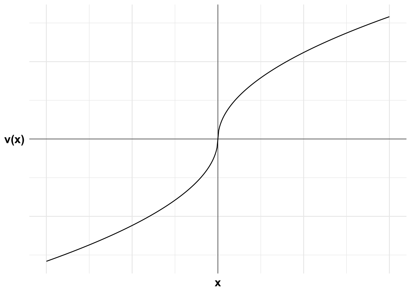 The following value function is an example of a function with diminishing sensitivity to both gains and losses. This function generates the reflection effect.